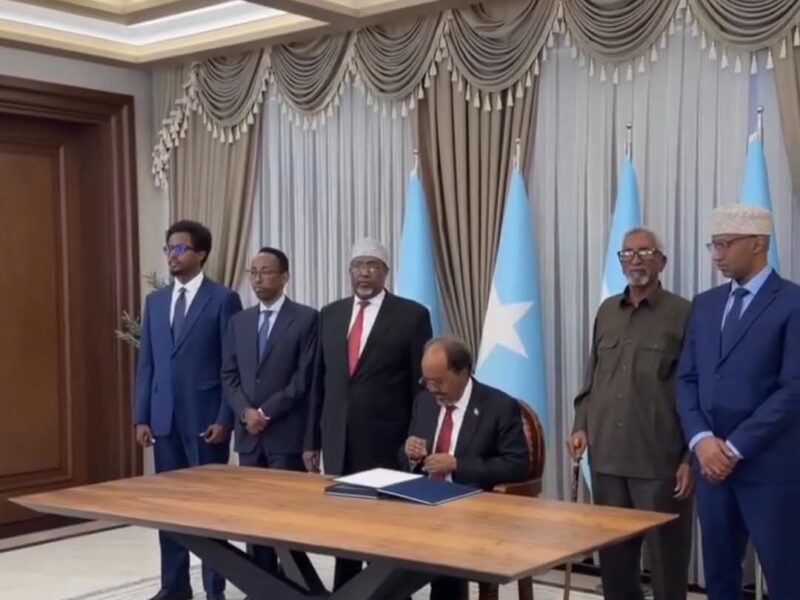 Madaxweyne Xasan Sheekh oo Saxiixay Dastuurka Cusub ee Jamhuuriyadda