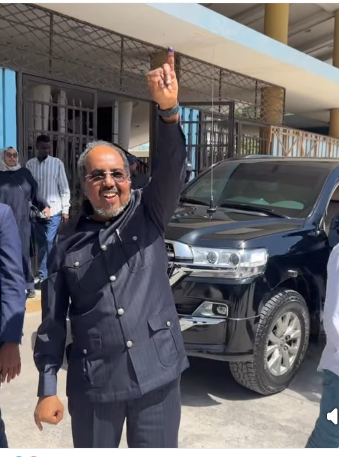 Madaxweynaha Jamhuuriyadda Federaalka Soomaaliya, Mudane Xasan Sheekh Maxamuud, ayaa goordhow codkiisa ka dhiibtay mid ka mid ah goobaha cod-bixinta ee doorashada Golaha Deegaanka ee ka socota 16-ka degmo ee gobolka Banaadir.